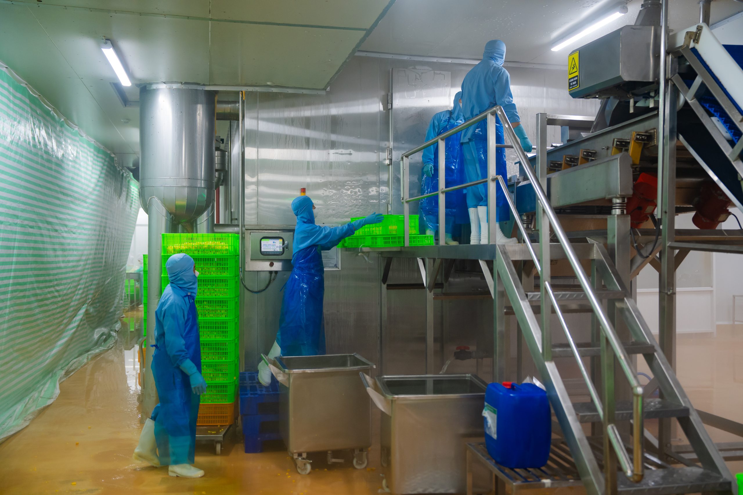 Bảo quản bán thành phẩm, tiếp theo là giặt lần 2 để giữ vệ sinh và chất lượng sản phẩm.